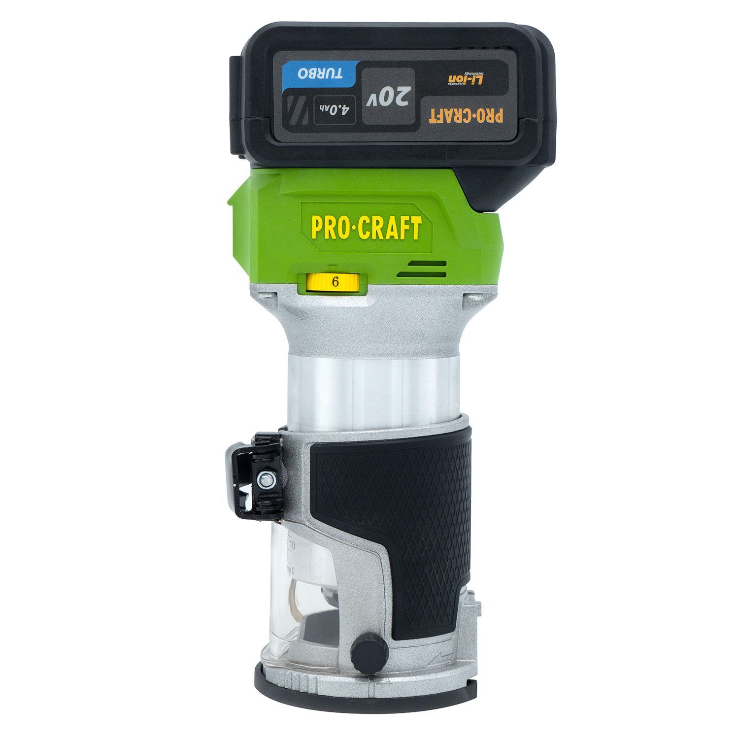 Aku horní frézka Procraft POB24 bb výkonný stroj s bezuhlíkovým motorem, regulací otáček (16 00035 000 ot./min) a kleštinami 6/8 mm. Součástí balení je podélný doraz, základna. Hmotnost: 1,1 kg