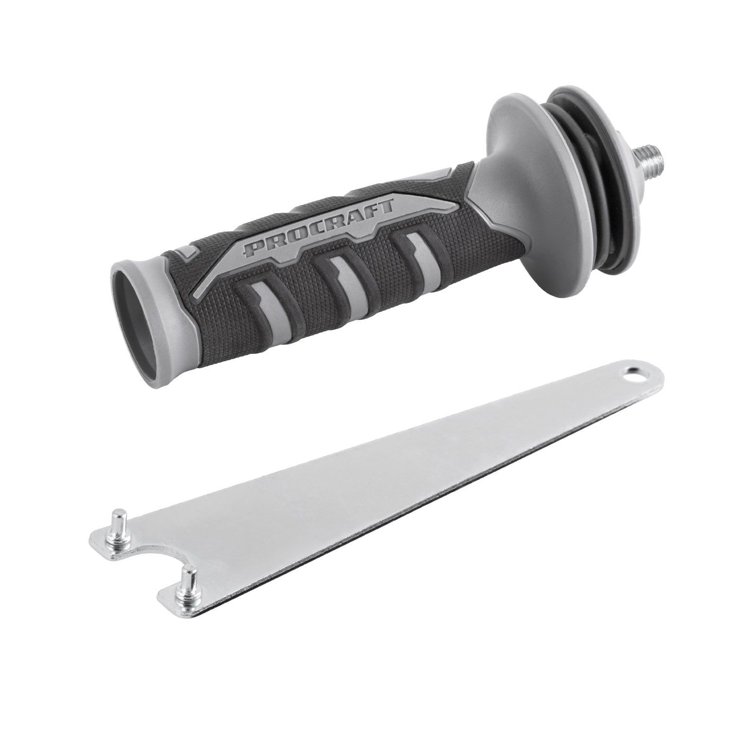 Přídavná ergonomická rukojeť: výrazně zvyšuje komfort a bezpečnost při práci. Díky pogumovanému povrchu a možnosti montáže na obě strany umožňuje snadné přizpůsobení pravákům i levákům, snižuje vibrace a zlepšuje stabilitu při delším broušení či řezání.