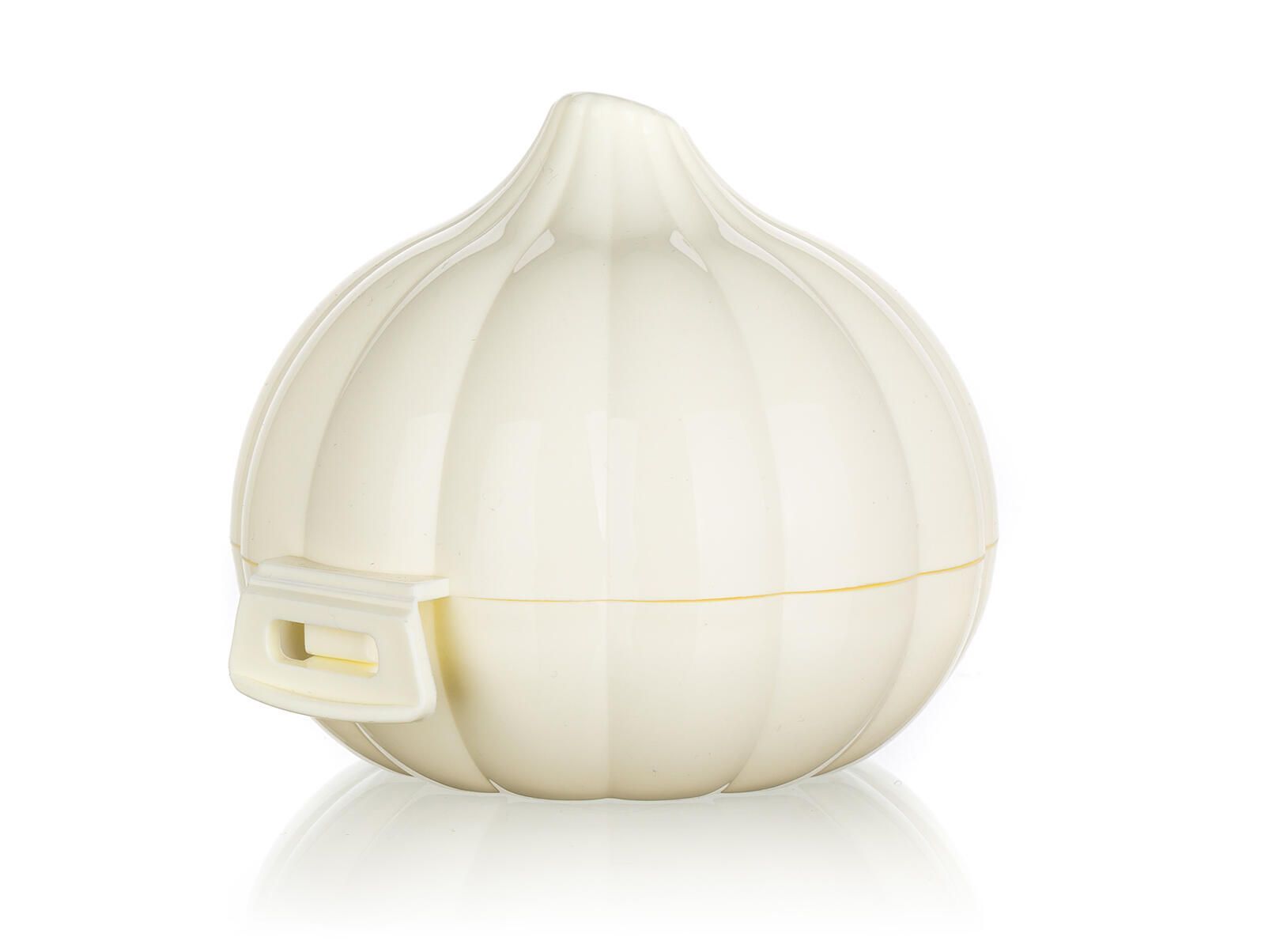 Praktický plastový box na česnek ACCASA ve tvaru, který přesně kopíruje tuto zeleninu.