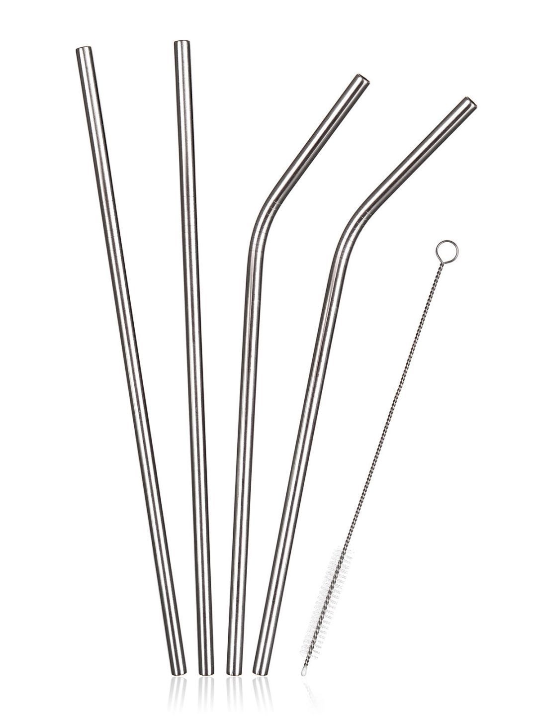 Sada 4 ks nerezových brček obsahuje 2 rovná a 2 zahnutá brčka.