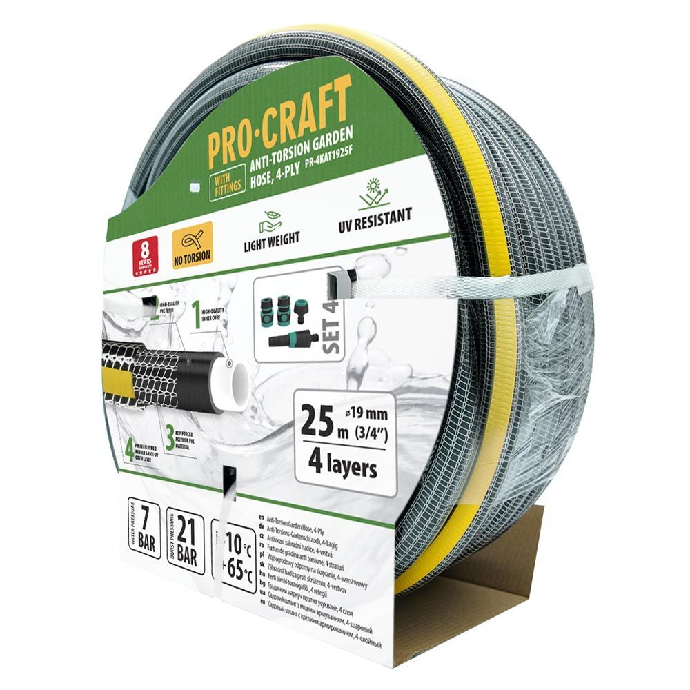 Zahradní hadice Procraft PR-4KAT1925 4-vrstvá, 3/4" 25 m s příslušenstvím