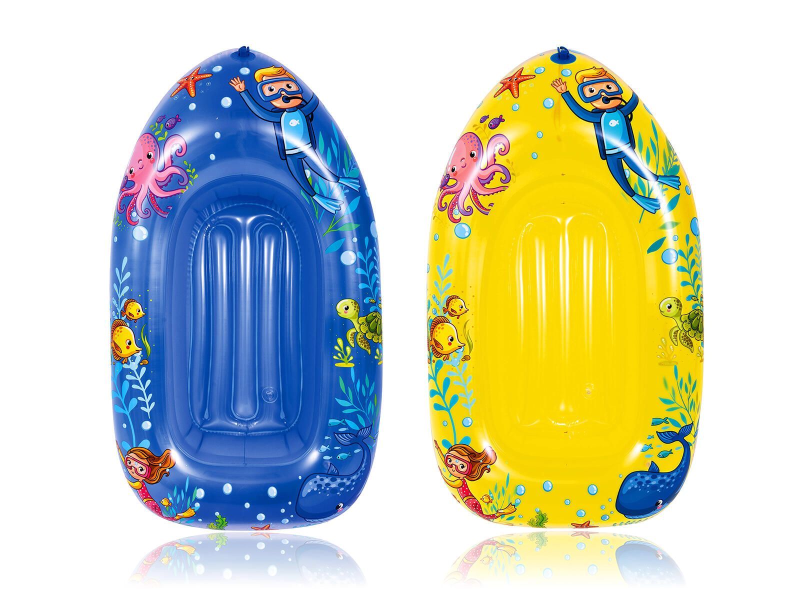 Dětský nafukovací člun OCEAN WORLD v barevném provedení s mořskými motivy je skvělý při hrátkách dětí ve vodě.