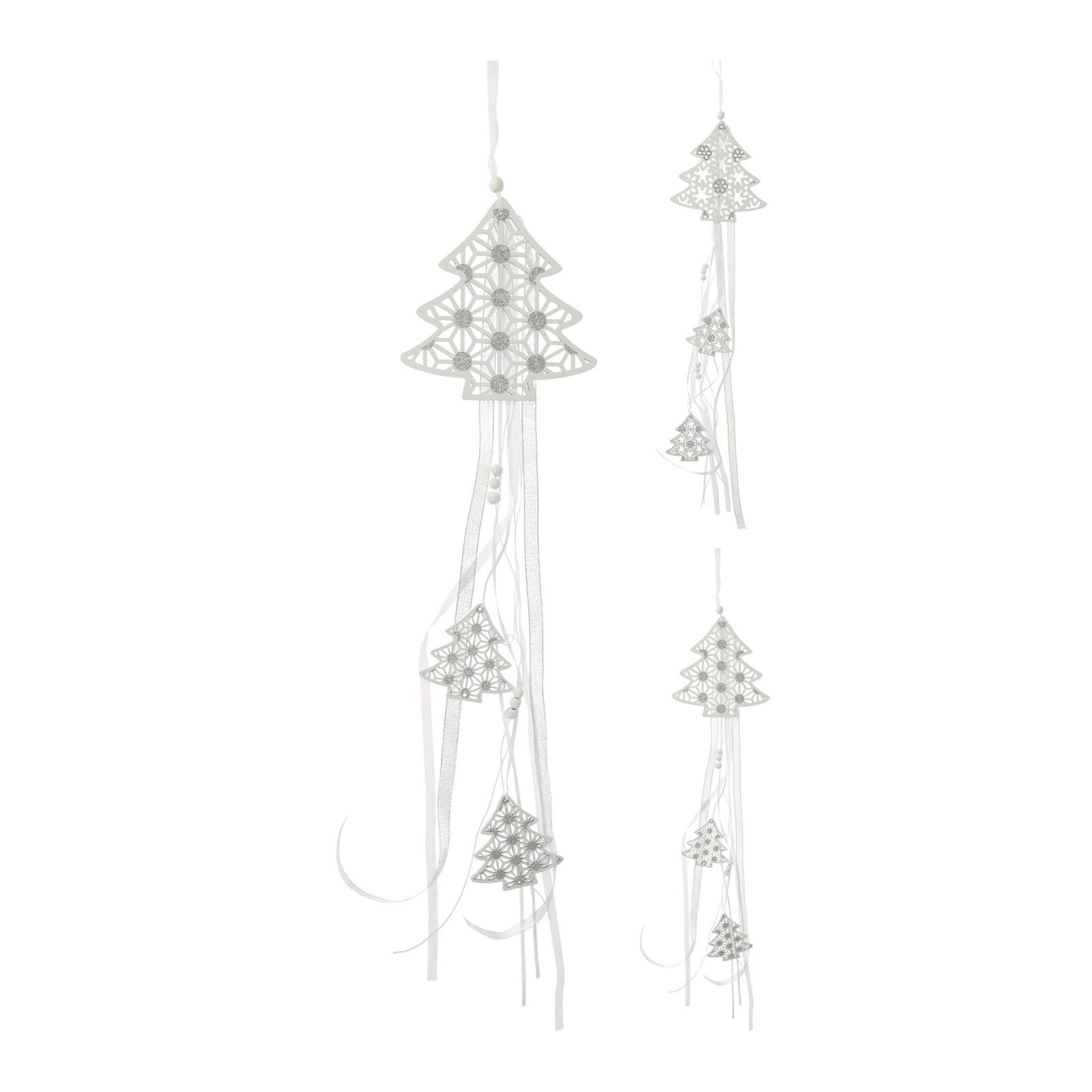 Závěsný velký dřevěný stromek a dva malé stromky, zdobené korálky a stříbrnými glitry.