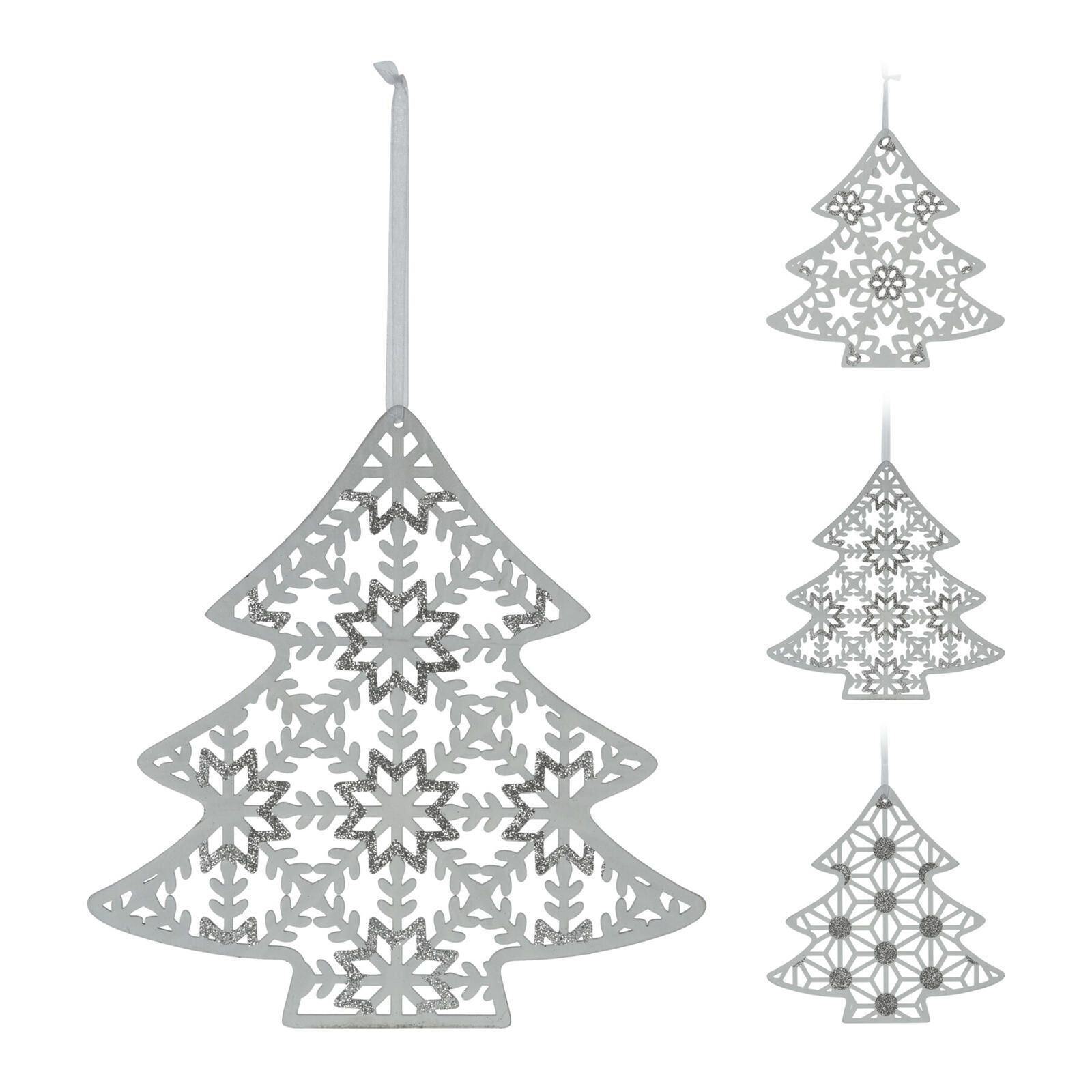 Závěsný dřevěný stromek v bílé barvě vykouzlí pravou sváteční atmosféru.