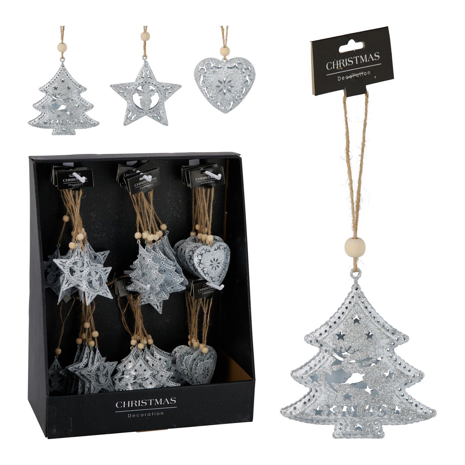 Závěsná kovová dekorace s vánočními motivy navodí slavnotní atmosféru.