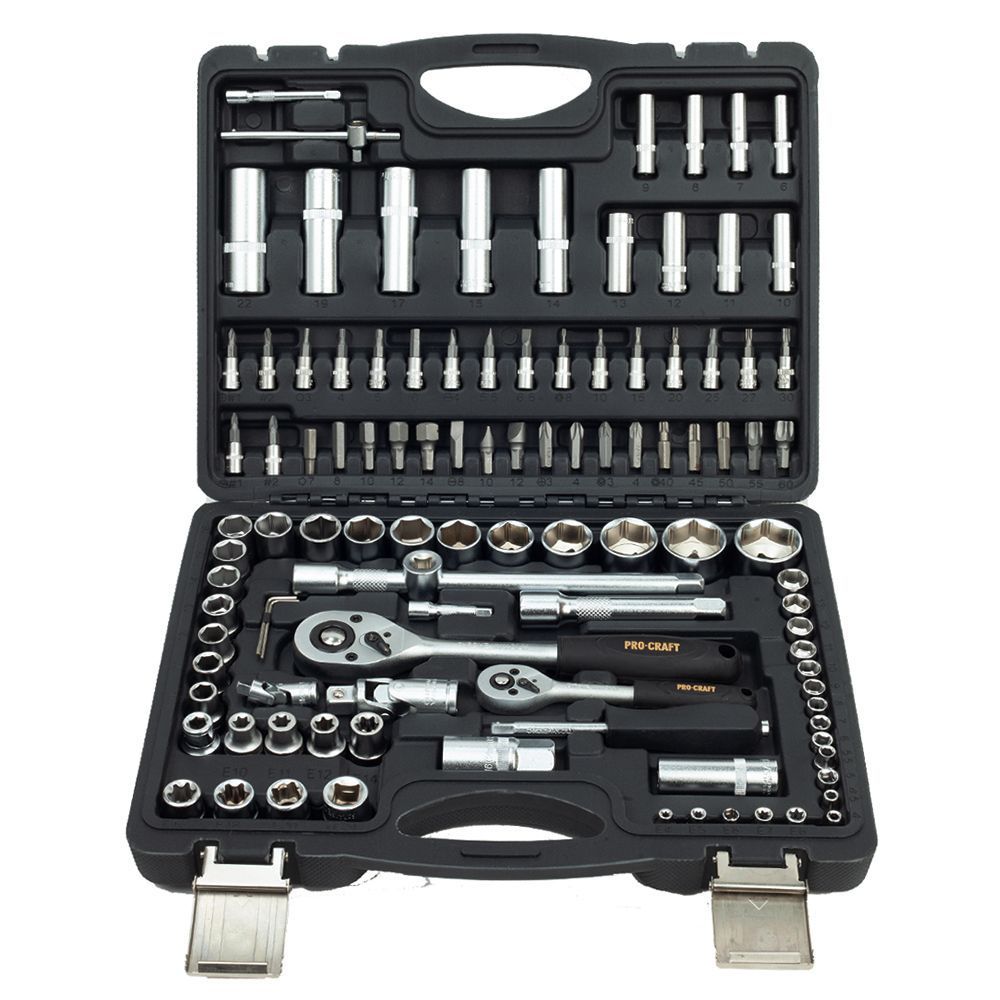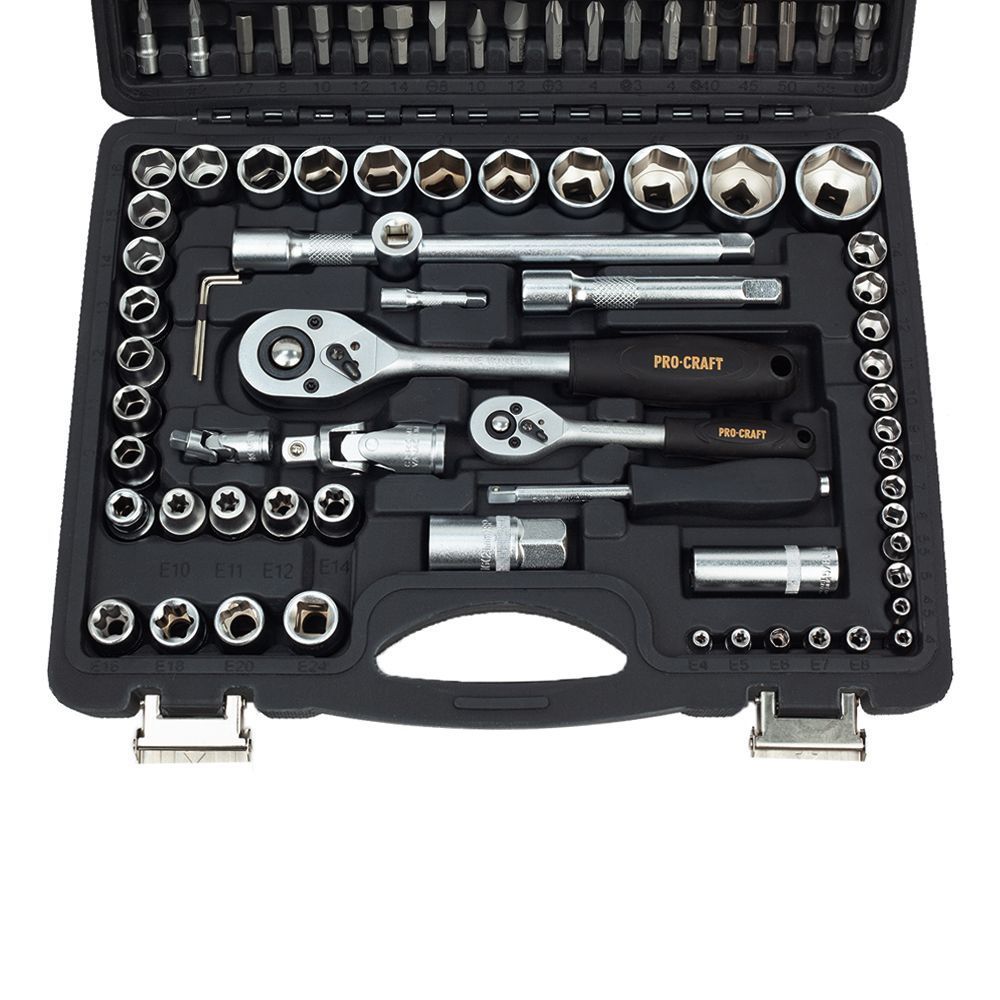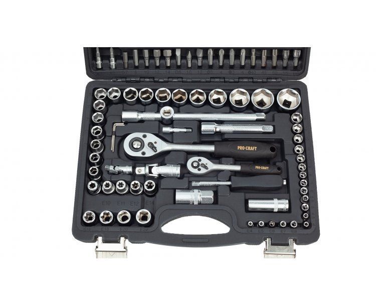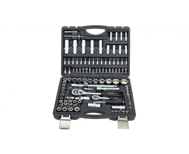 Gola sada Procraft WS-108 108 dílů je určena k použití v domácí dílně, ale i pro mechaniky. Hlavice a ráčny jsou vyrobeny z kvalitné chrom-vanadiové oceli (CRV) chrání proti korozí a tvrdý povrch produžuje životnost. Ráčny mají 48 zubů v rohatkovém převodu a jsou vybaveny páčkou. Odolný plastový kufr s kovovým zavíráním usnadňuje dlouhodobé použití a přenášení. Přehledně roztříděné nářadí usnadňují a zrychlují práci. Sada obsahuje ráčny, bity, nástrčné hlavice, šestihranné klíče, vratidla, univerzální klouby, prodlužovací nástavce a šroubovák pro nástrčné bity. Součástí dodávky je plastový kufr.