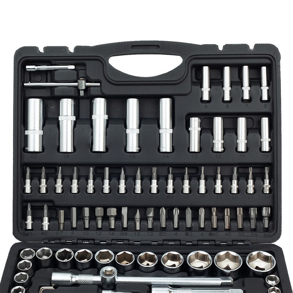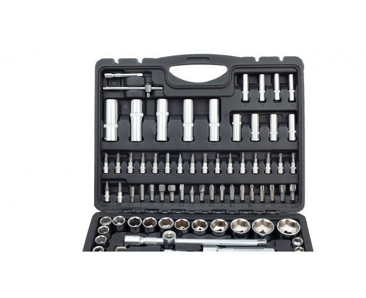 Součástí balení: 8x 1/4" hlavice nástrčné prodloužené, 2x1/4" a 2x 1/2» prodlužovací nástavec, 1/4" a 1/2" univerzální kloub, 1/4" a 1/2" ráčna, 5x1/4" a 8x1/2" hlavice nástrčné torx, 1/4" šroubovák, 1/4