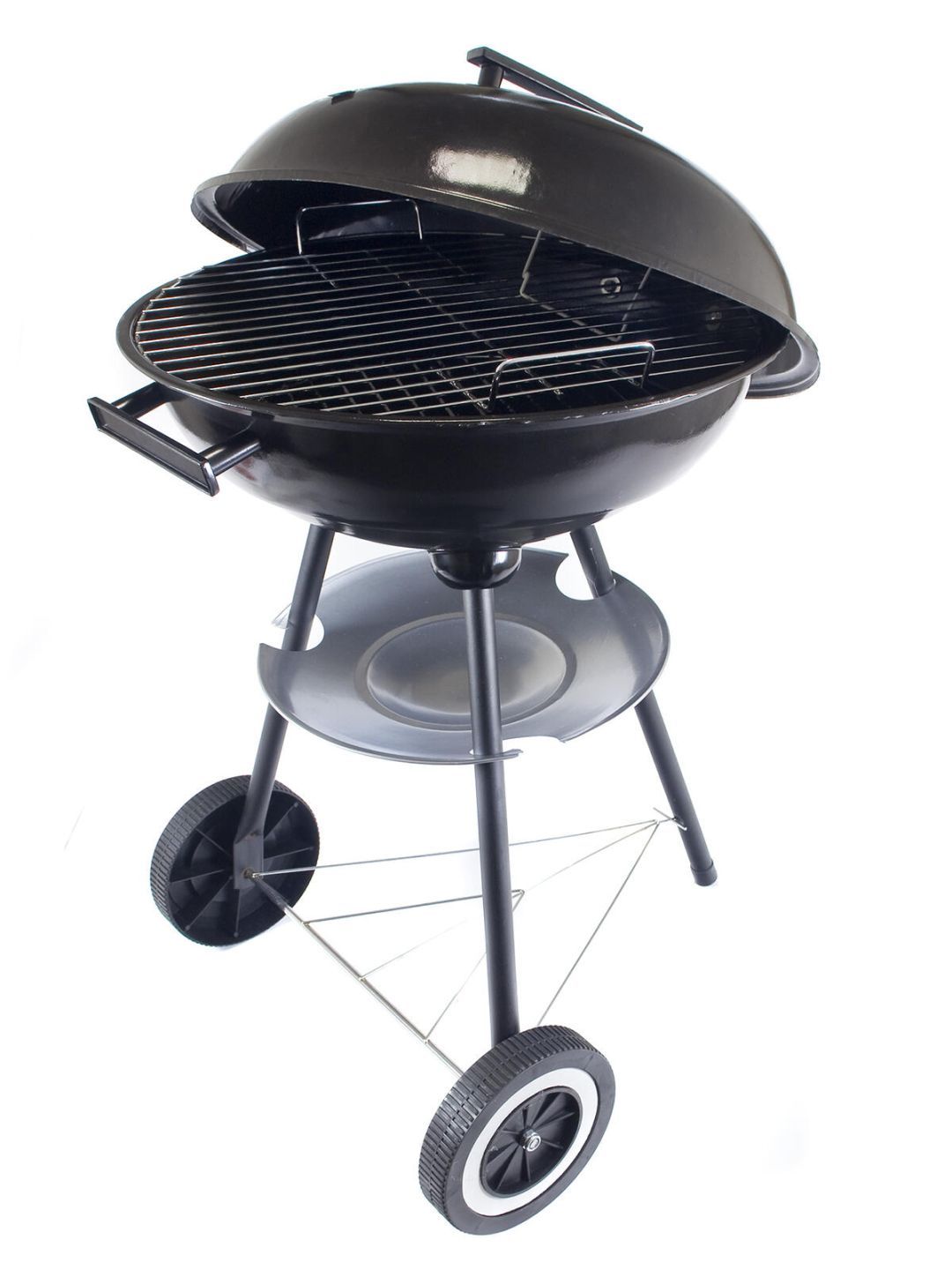 Gril BALL je kulatý gril s poklicí, pojezdovými plastovými koly a popelníkem.