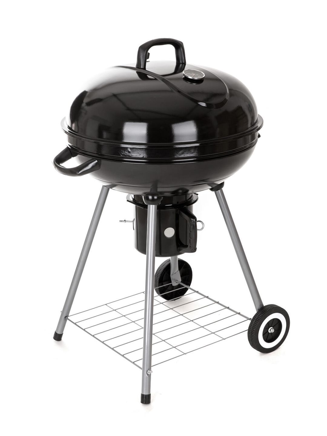 Gril VERMOUNT má smaltované ohniště (černé barvy), chromovaný rošt, nohy z nerezové oceli, pozinkovaný rošt na uhlí a vyjímatelný externí popelník. Pro snadnější manipulaci je gril opatřeny dvěmi plastovimý kolečky. Rozměry: 60 x 57 x 82 cm, průměr ohniště 57 cm, výška ohniště 67 cm.