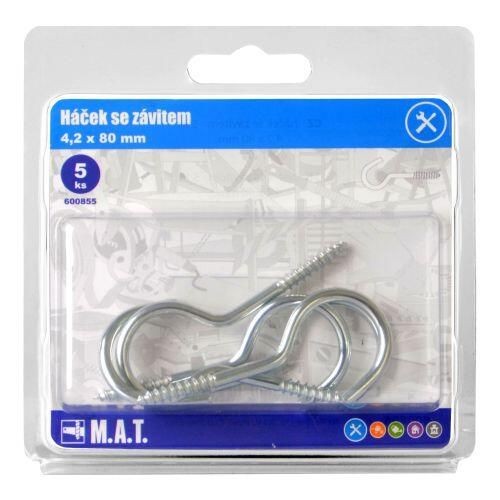 HOME (27931) > Železářství a domácí potřeby (13554) > ŽELEZÁŘSTVÍ (6427) > ZÁMKY, KOVÁNÍ, SCHRÁNKY (1466) > Háčky, háky, karabiny, drobné kování, skoby (179) > Očko se závitem (40) > háček se závitem 80x4,2mm Zn (5ks)