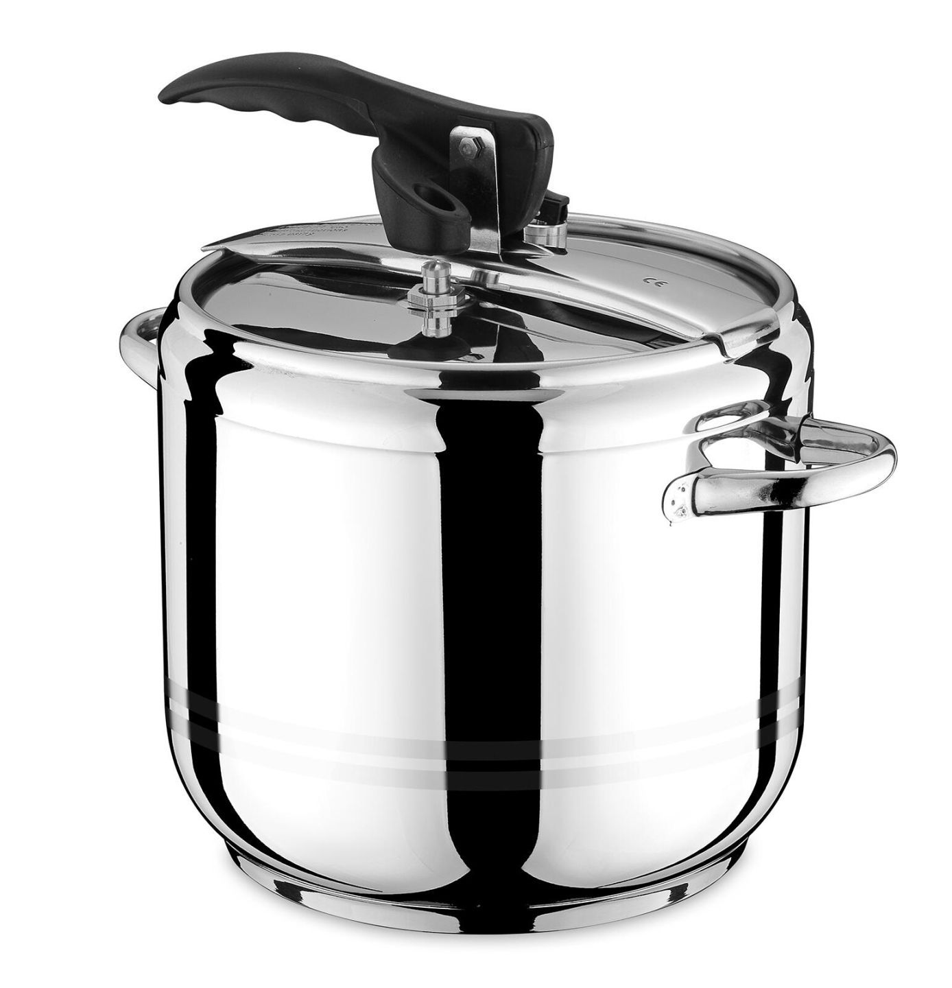 Nerezový tlakový hrnec s pákovým uzávěrem.