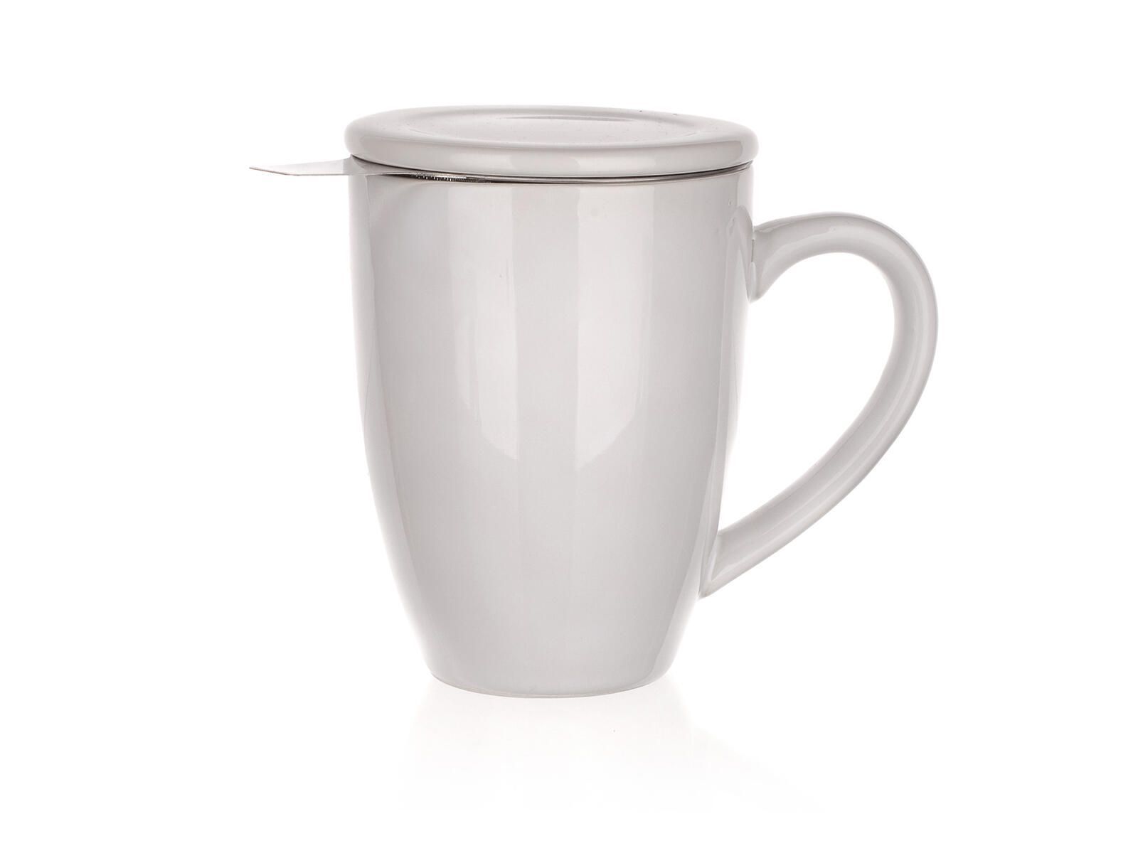 Hrnek 350 ml bílý keramický, víčko + nerez sítko.