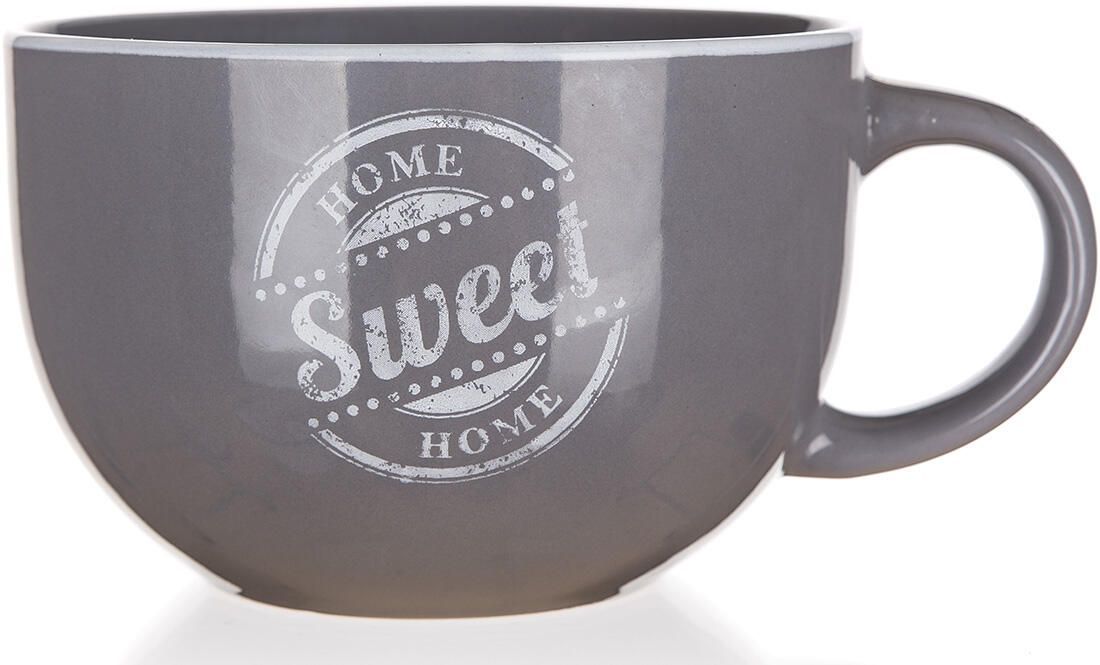 Hrnek keramický jumbo SWEET HOME 730 ml, šedýHrnek jumbo 730 ml s dekorem SWEET HOME je vyroben z keramiky, vhodný na horké i studené nápoje. Výška hrnku 8,6 cm, průměr horní 13 cm a průměr dolní 7 cm. Hrnek lze používat do mikrovlnné trouby a mýt v myčce na nádobí. Barva: Šedá | Dekor: Sweet Home | Materiál: Keramika | Hmotnost brutto (kg): 0,52 | Průměr dolní (cm): 7 | Průměr horní (cm): 13 | Hmotnost netto (kg): 0,52 | Záruka: 24 | Výška (cm): 8,6 | Myčka: Ano | Mikrovlnka: Ano | Objem (ml): 730 | Výrobce / značka: BANQUET