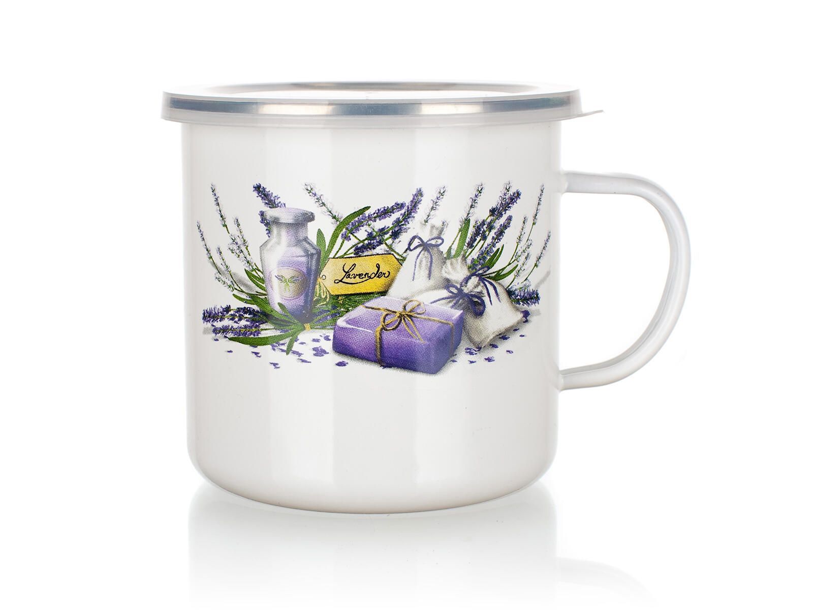 Smaltovaný hrnek LAVENDER 0,7 l s plastovým víčkem.