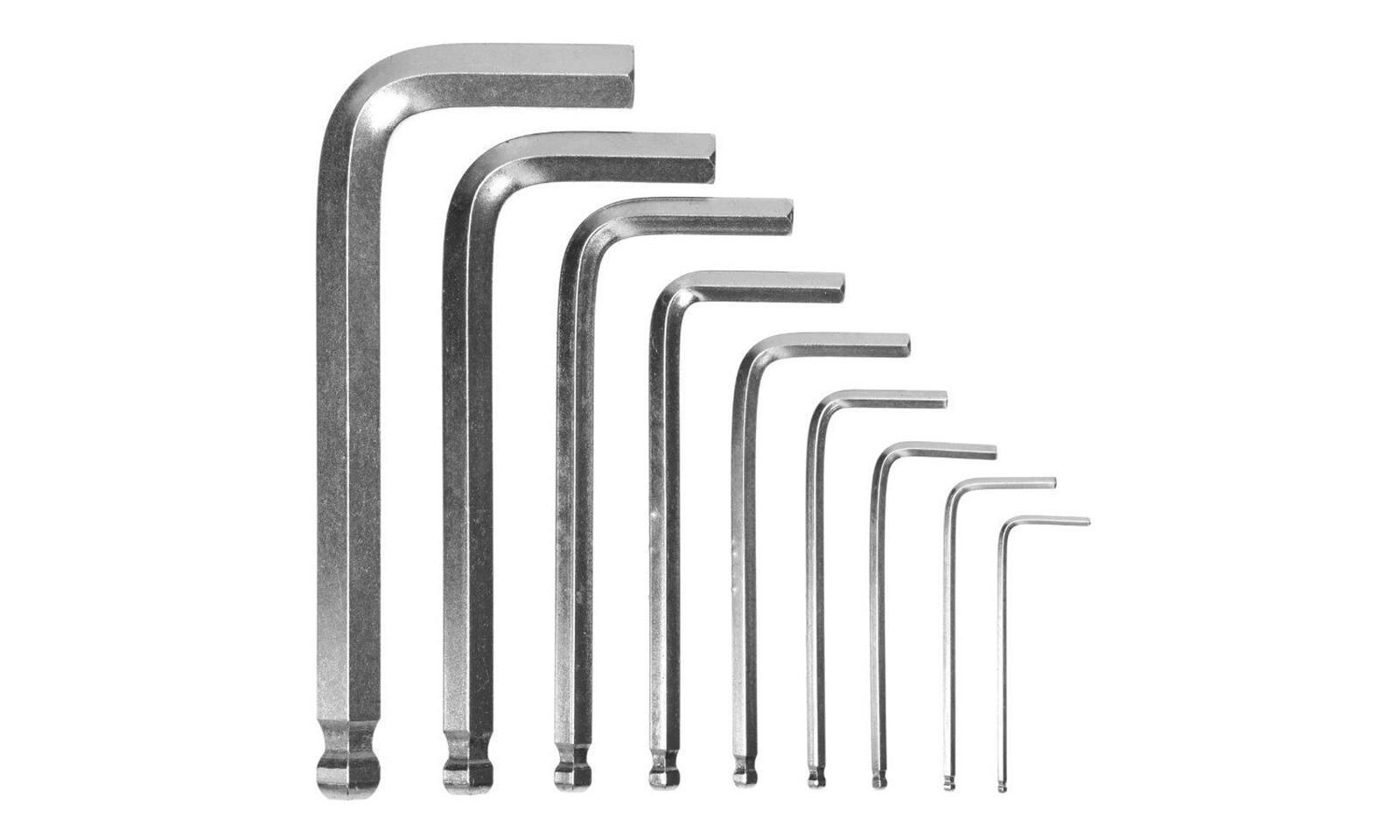 Sada 9 šestihranných klíčů s kulovým hrotem z chromované oceli.
