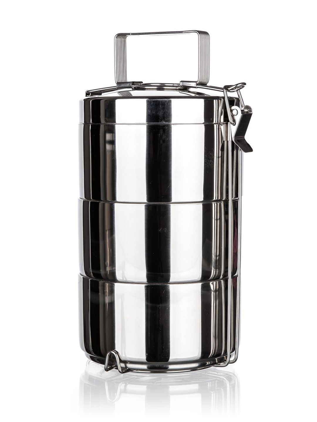 3dílný nerezový dvoustěnný jídlonosič AKCENT je určený k přenášení potravin a hotových pokrmů.