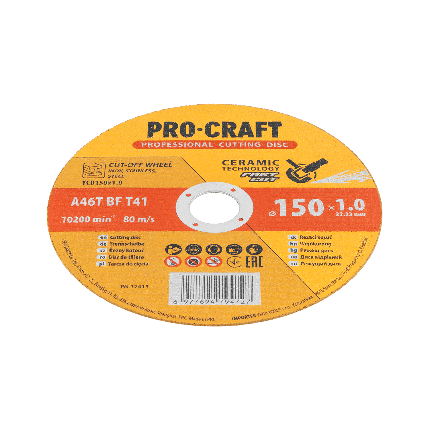 Keramický řezný kotouč Procraft YСD150x1.0. Průměr kotouče: 150 mm, Průměr otvoru: 22,23 mm, Tloušťka 1,0 mm,