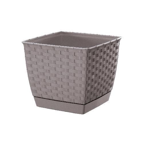 květináč 25x25x22 běž. tm. s miskou RATOLLA SQUARE