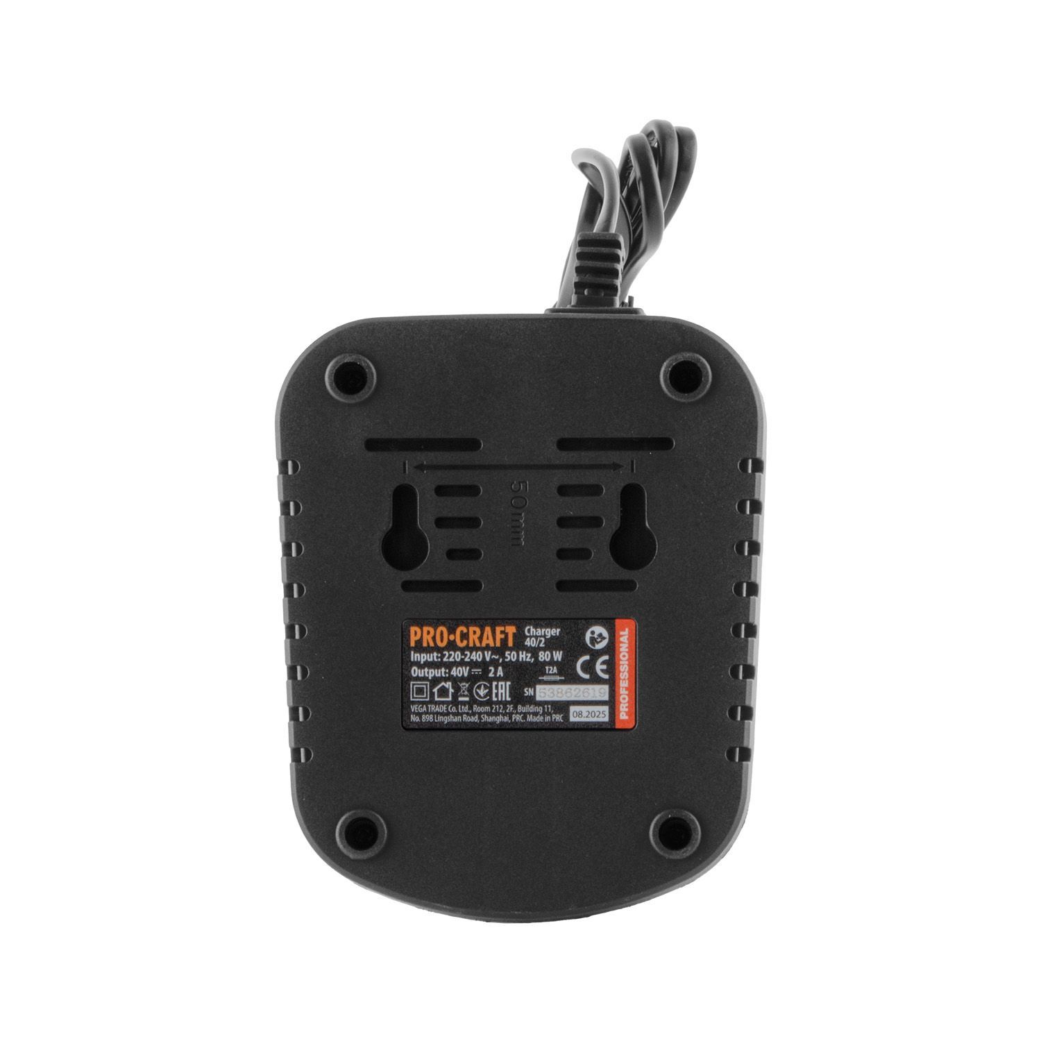 Nabíječka Procraft 40/2 je speciálně navržena výhradně pro dvouplatformovou akumulátorovou baterii Procraft 20/40. Je plně optimalizovaná pro řízení nabíjení tohoto typu baterie a není určena pro běžné samostatné 20V ani jiné 40V akumulátory Procraft.