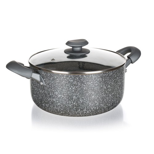 Pánev 28 x 5,8 cm, nepřilnavý povrch, Al, GRANITE PR, indukce.průměr: 28 cmvýška: 5,8 cmtloušťka stěny: 2,5 mmtloušťka dna: 2,5 mmHliníková presovaná pánev GRANITE, s nepřilnavým 2vrstvým povrchem, v granitovém dekoru a šedou bakelitovou rukojetí se soft - touch povrchovou úpravou. Pánev je vhodná na všechny typy varných desek včetně indukce. elektrika: anoplyn: anosklokeramika: anoindukce: anomyčka: ano