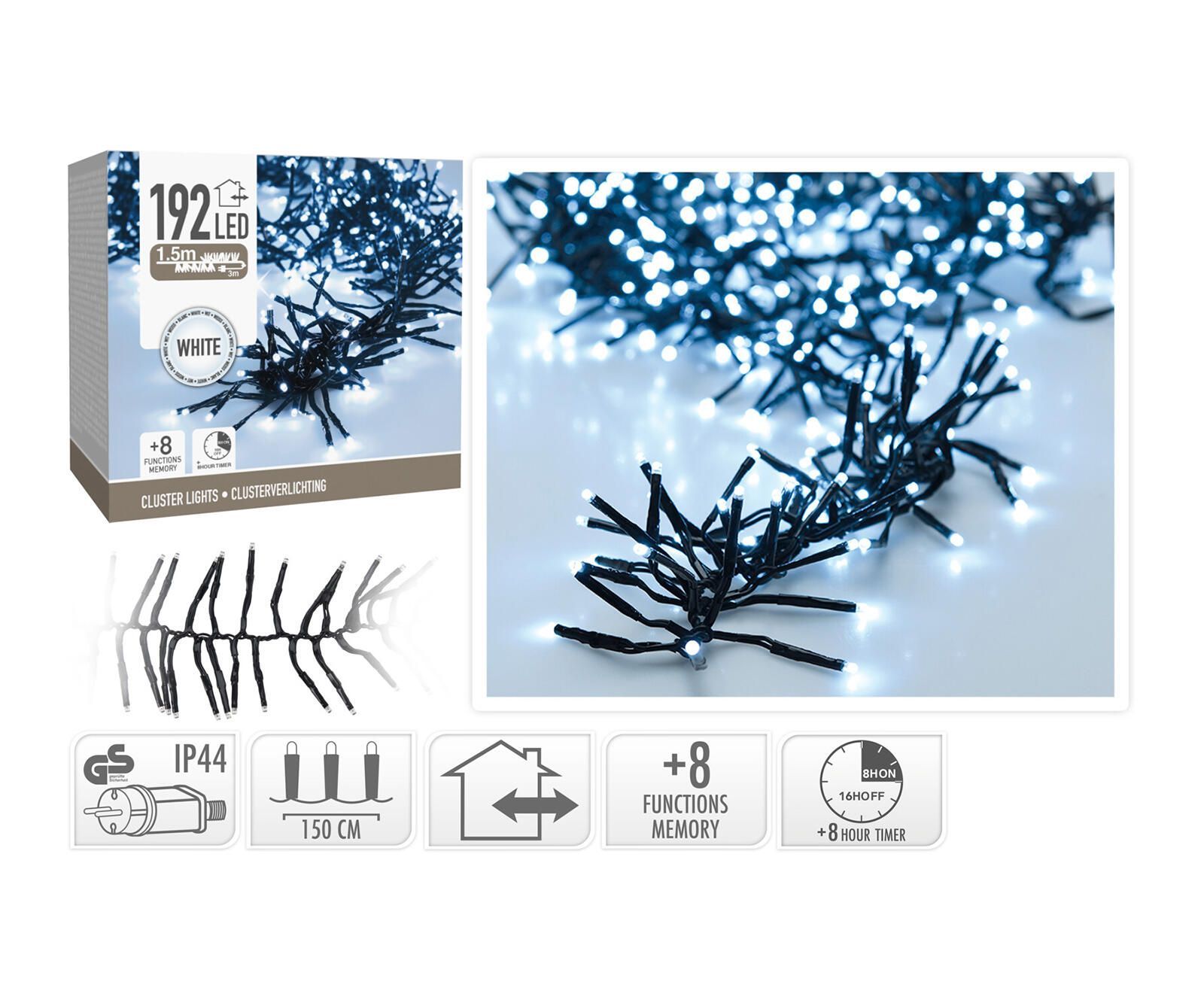 Osvětlení vánoční 1,5 m, 192LED, studená BÍ, 8 funkcí, s časovačem.