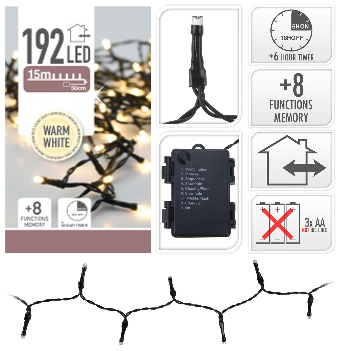 osvětlení vánoční 15m 192LED teplá BÍ, 8 funkcí, ZE, IP44