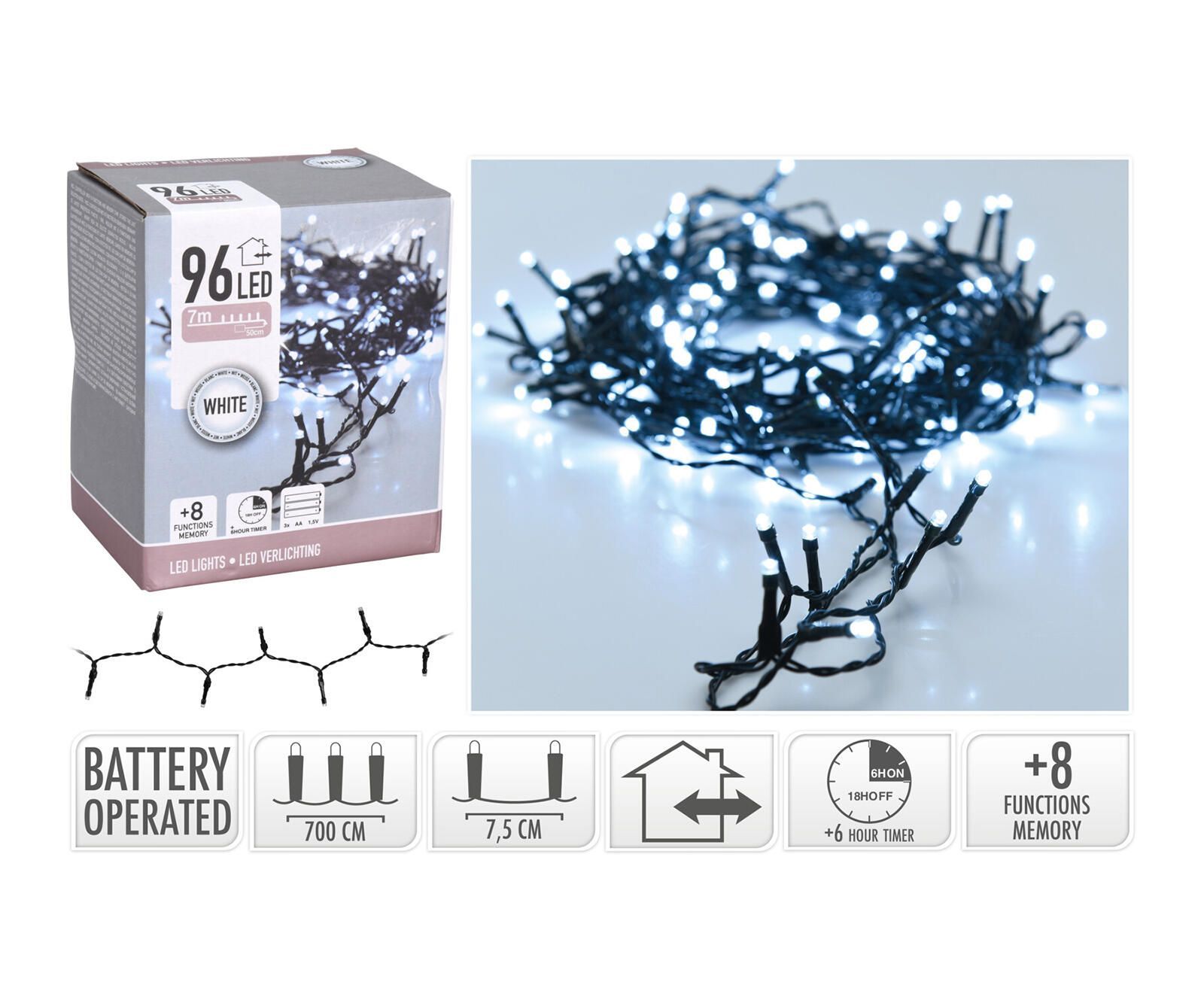 Osvětlení vánoční 7 m, 96LED, studená BÍ, 8 funkcí, s časovačem.