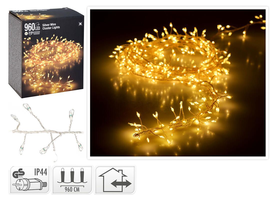 Osvětlení vánoční 9,6 m, 960LED, teplá BÍ, STŘ drát.