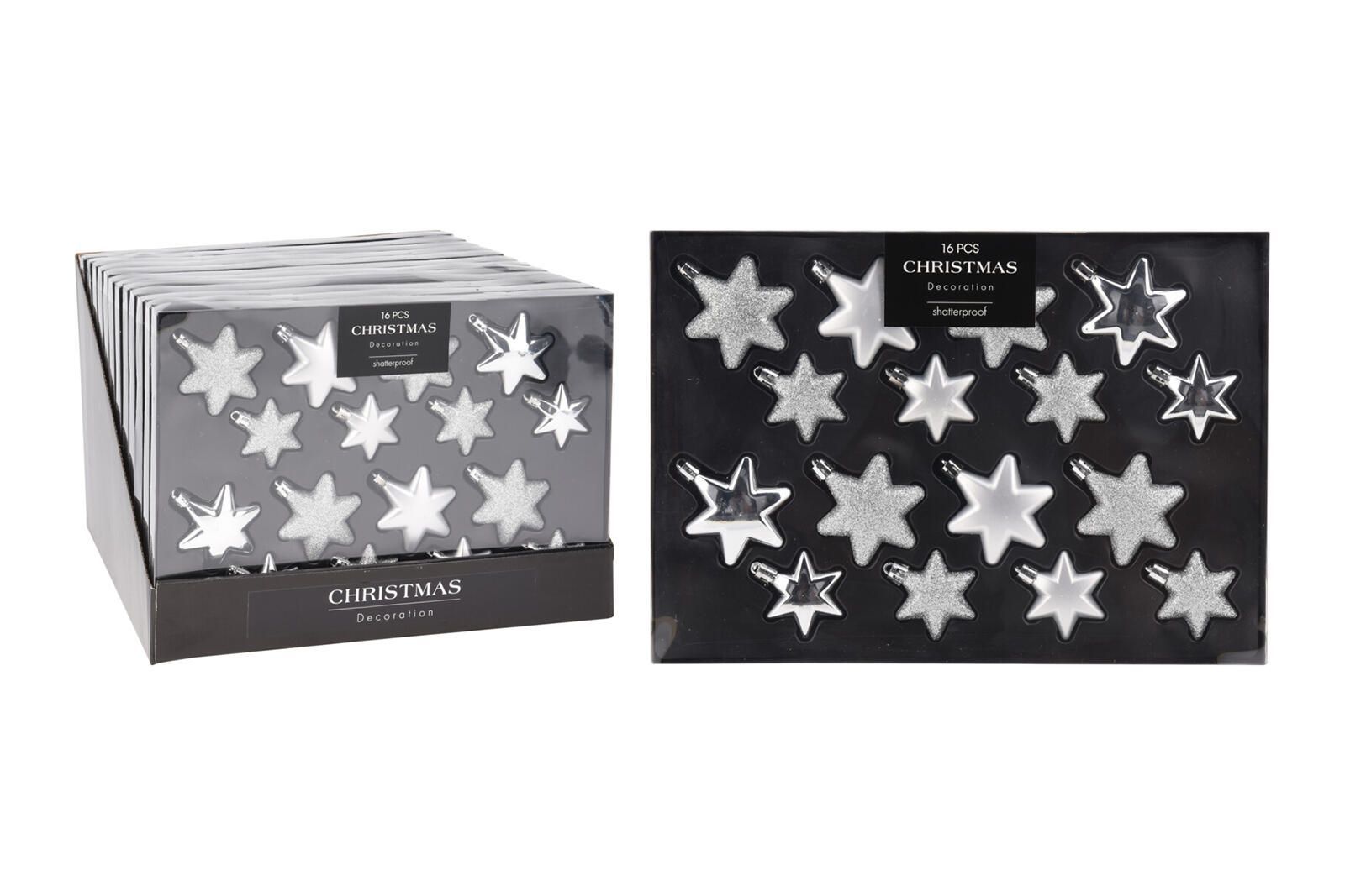Vánoční sada obsahuje závěsné ozdoby ve tvaru hvězdy.