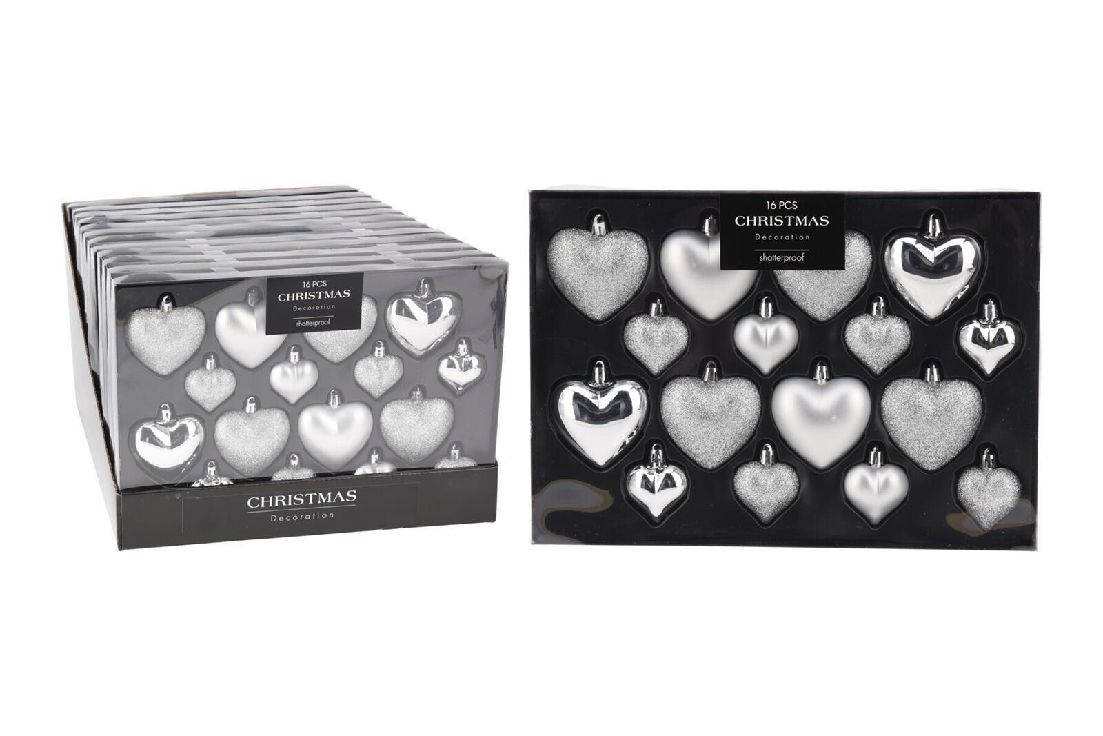 Ozdoba vánoční SRDCE 4,5 cm / 6,5 cm, STŘ mix (8 + 8 ks).