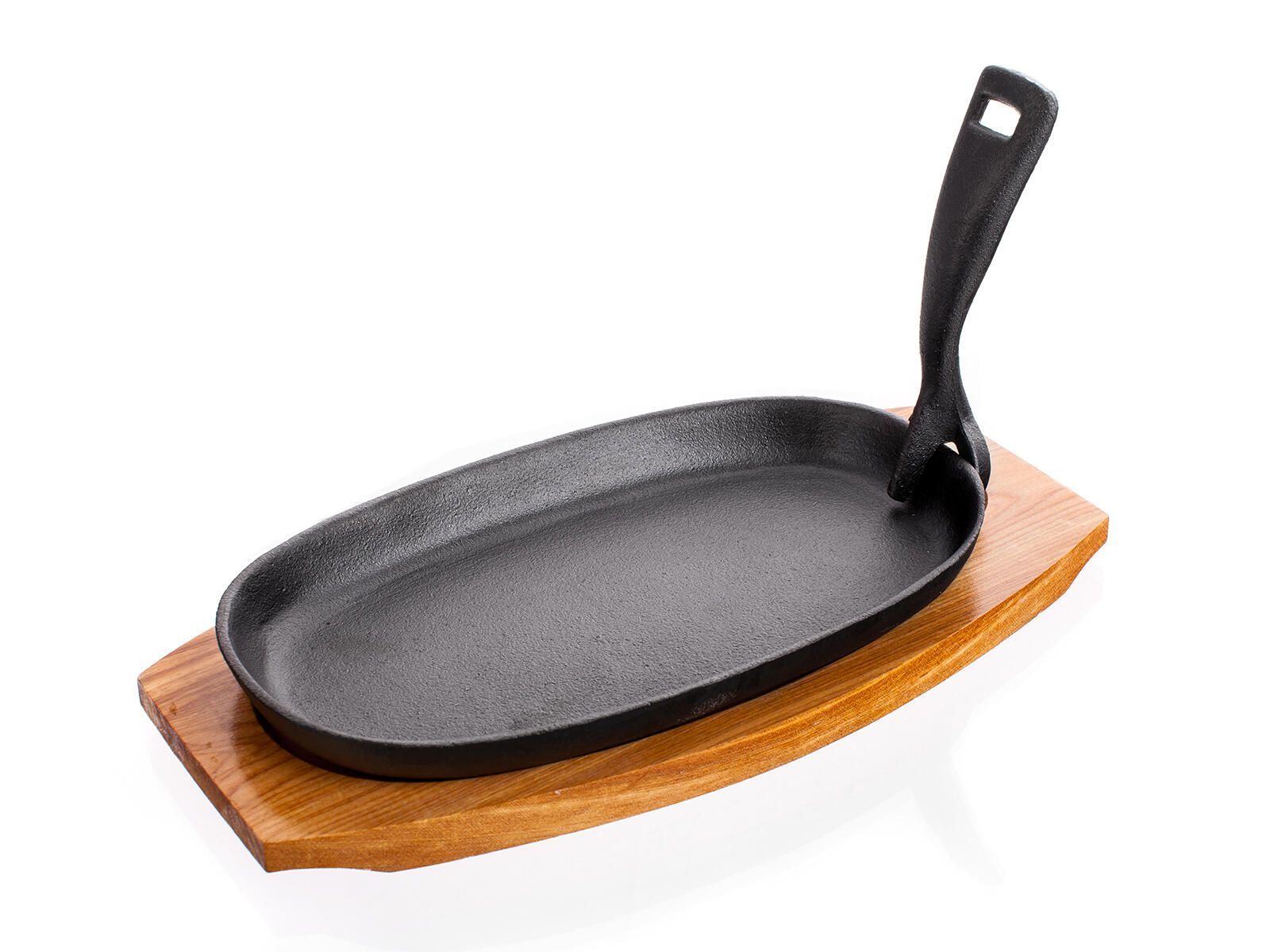 Pánev 23 x 14 cm GRADA, litina + dřevěné prkénko.
