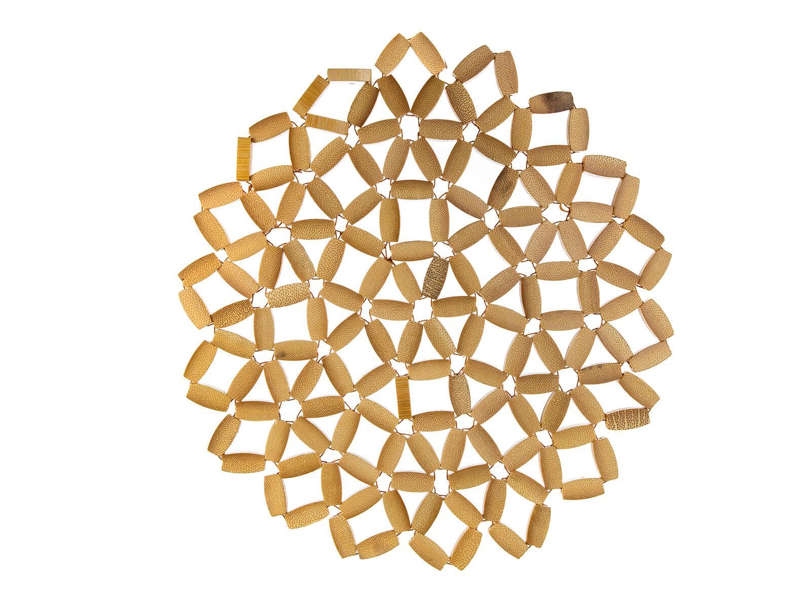 Podložka je tvořena ručně skládanou mozaikou z bambusových obdelníčků o průměru 22 cm.