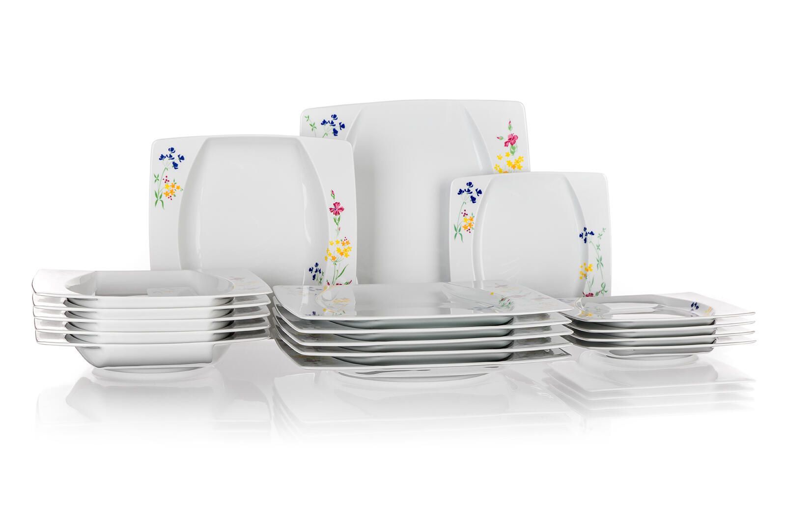 18dílná porcelánová talířová sada EYE square, vyrobena v české porcelánce Thun.