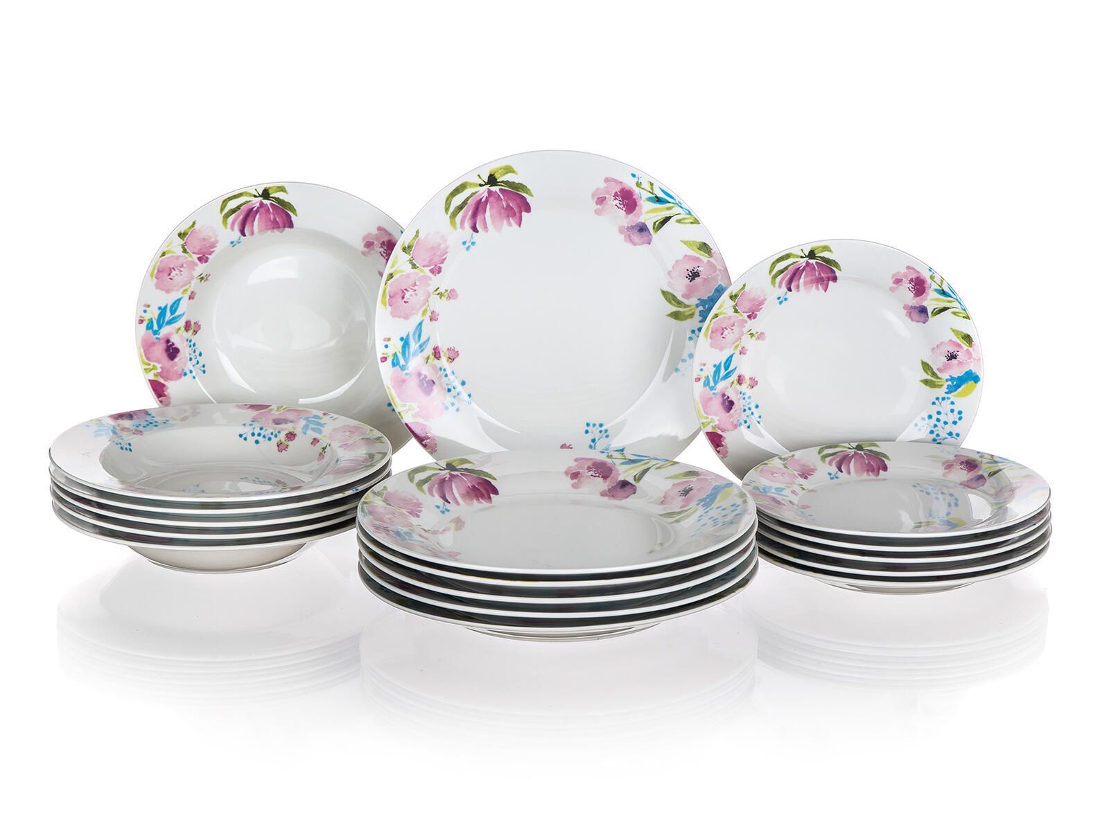 18dílná talířová sada PINK FLOWERS je vyrobena z porcelánu.