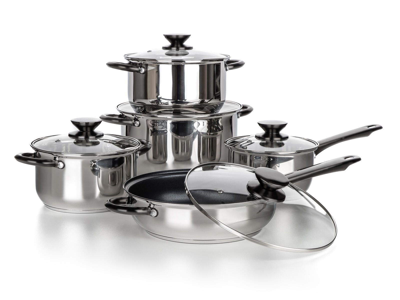 HOME (28249) > Železářství a domácí potřeby (14018) > DOMÁCNOST (4619) > NÁDOBÍ (315) > Nádobí nerezové (64) > Hrnec + poklice (24) > sada nádobí 10díl. nerez SWING Black