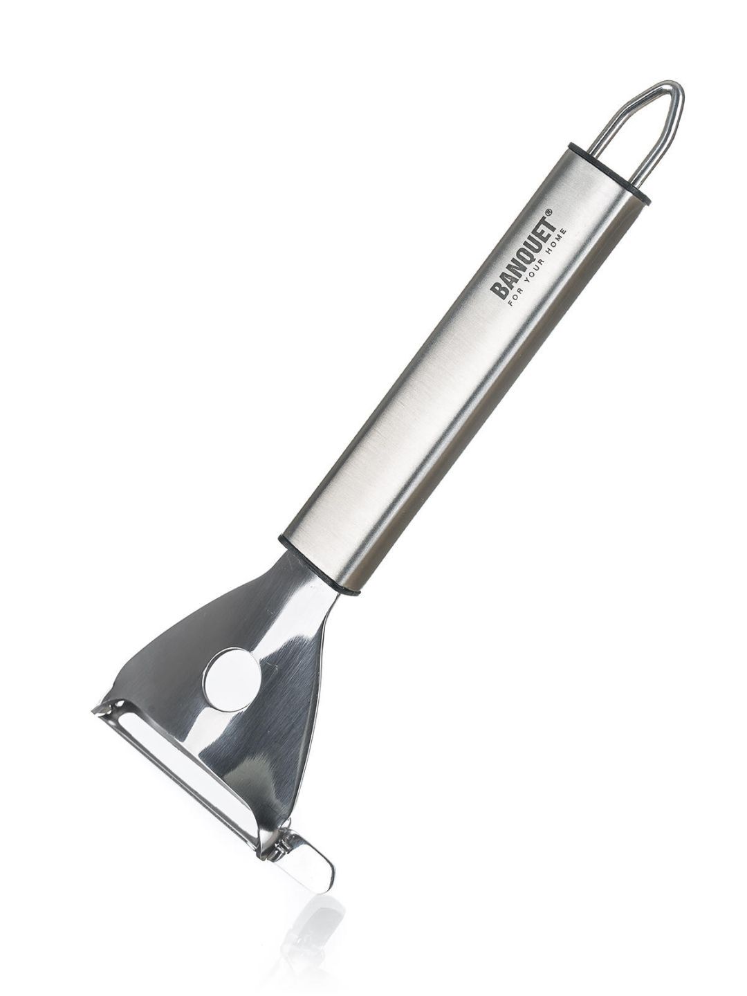 Škrabka je vyrobena z nerezové oceli a má praktické držadlo s očkem pro možnost závěsu.