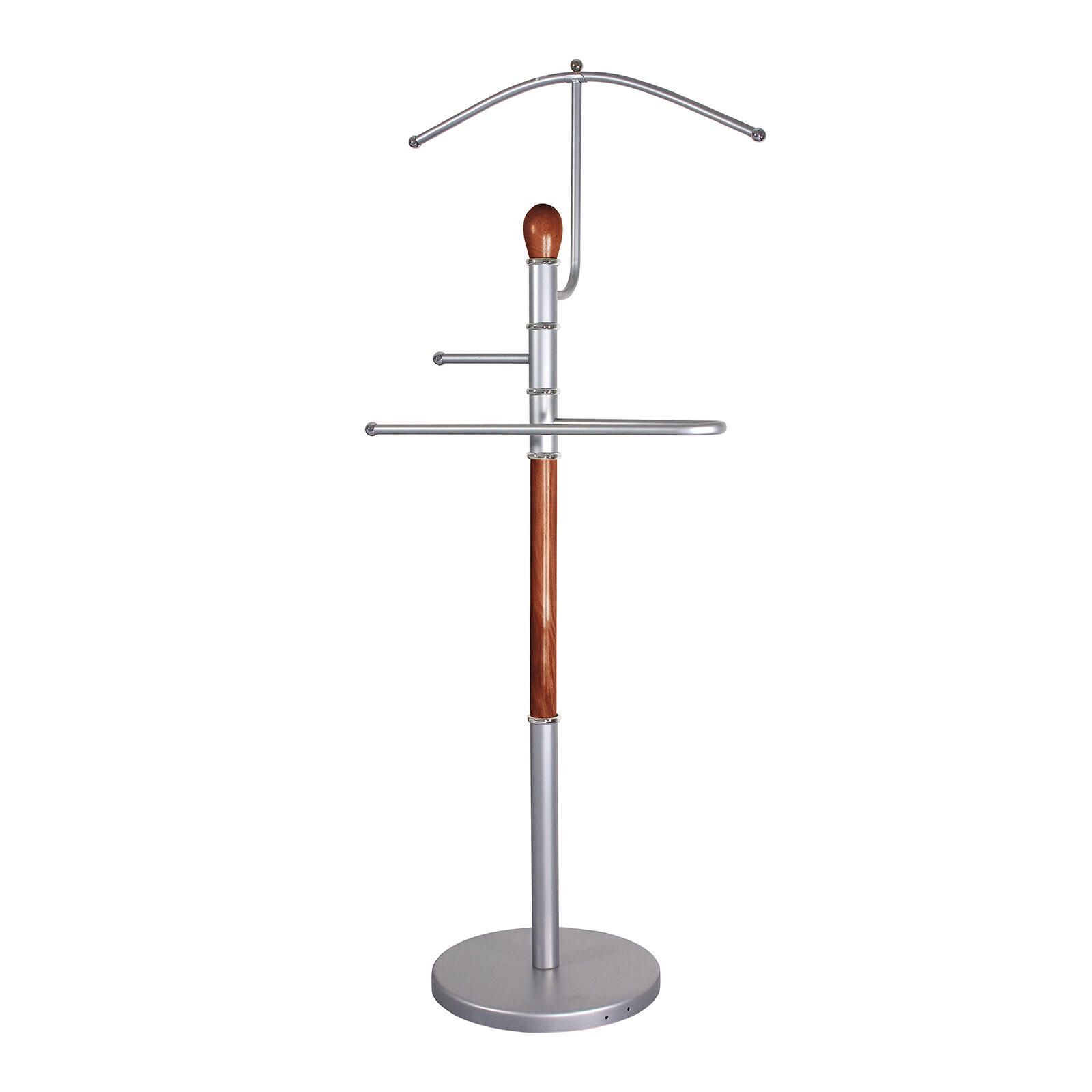 Němý sluha v provedení chromu a dřeva je praktický pomocník na odkládání oděvu a nejrůznějšího oblečení.