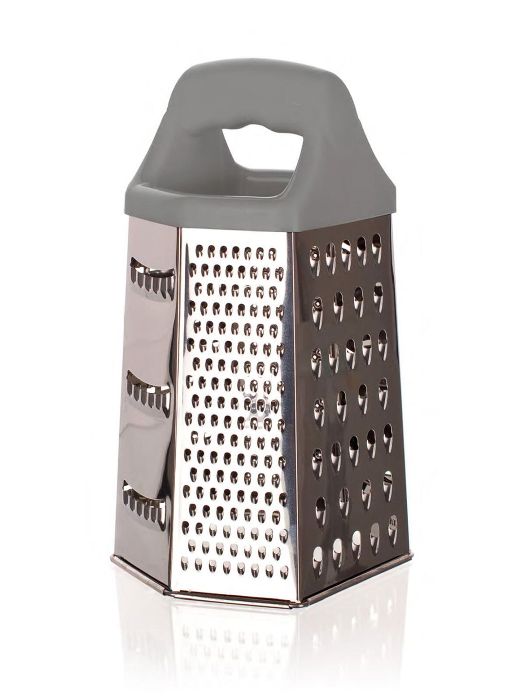Nerezové struhadlo 6stranné CULINARIA Grey, výška 22,5 cm, nerez 430 (18/0), tl.0,25 mm, plastová rukojeť (ABS). Struhadlo je stabilní při práci a snadno se čistí.
