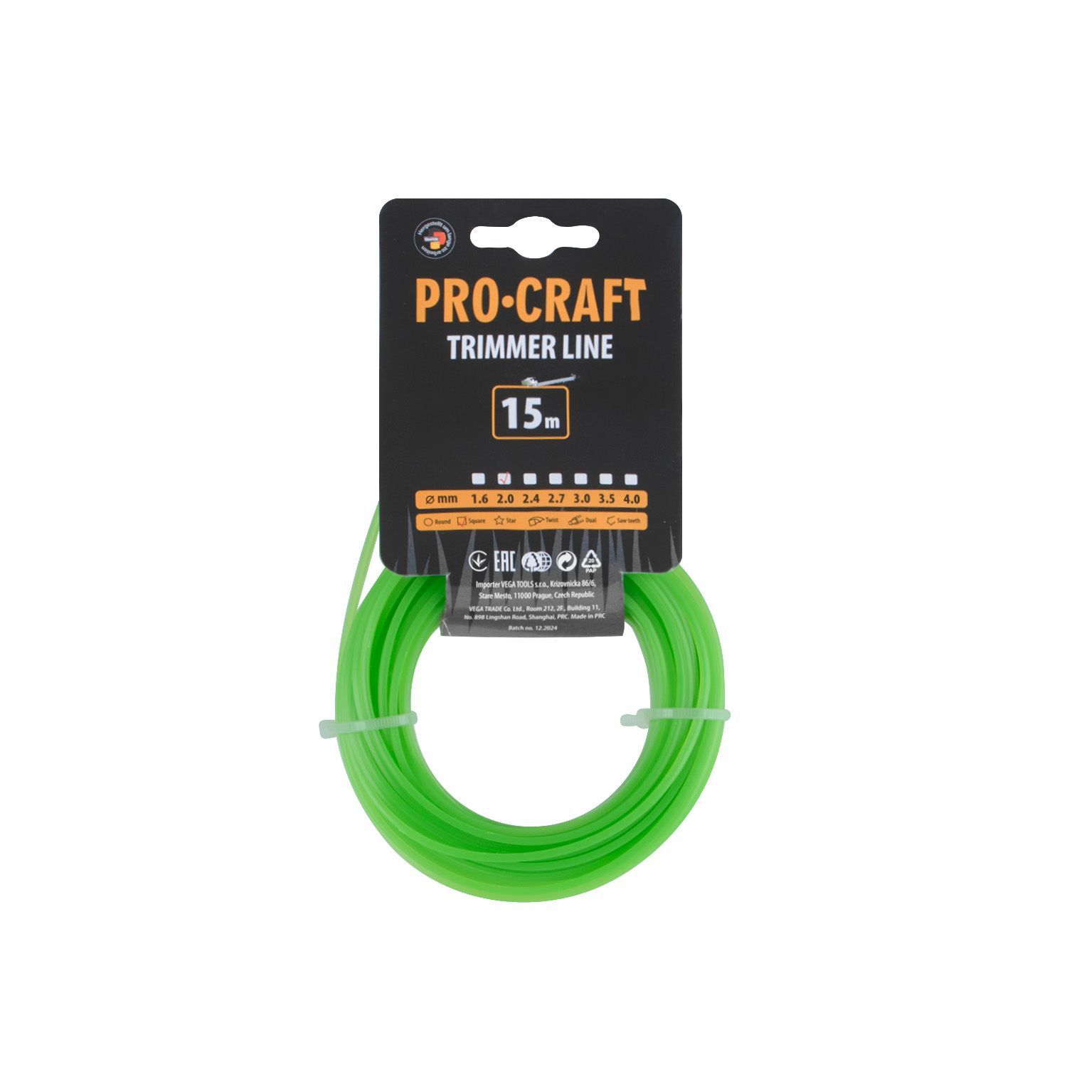 Struna žací (2mm) (15m) čtverec PROCRAFT KV-2/15 | KV-2/15