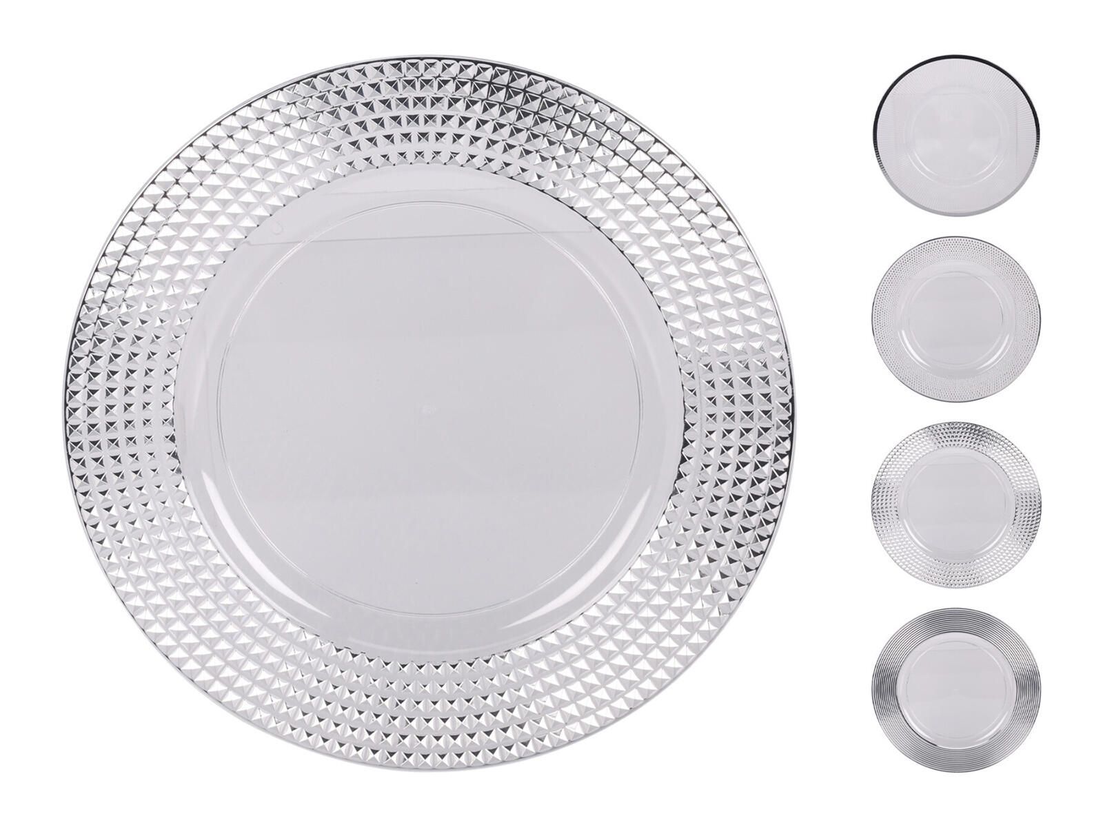 Plastový stříbrný talíř bude ozdobou na svátečním stole.