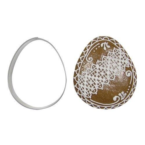 Nerezové vykrajovátko ve tvaru vejce je určené na vykrajování zajímavých tvarů z těsta na cukroví.