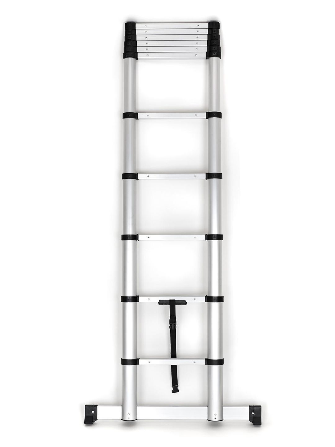 Žebřík teleskopický 320 x 81 x 8 cmHliníkový teleskopický žebřík s velmi stabilní konstrukcí, se stabilizační základnou a bezpečnostním zpomalovacím systémem skládání - dle nejnovější normy EN 131-6. Automatický zámek jednotlivých příček, maximální nosnost 150kg. Výška pouhých 84 cm ve složeném stavu umožňuje snadné přenášení, uskladnění i převoz například autem. Možnost volitelné výšky výsuvu dle potřeby. Žebřík má celkem 10 příček + horní madlo + spodní stabilizační lišta. Rozestup příček je 29 cm.