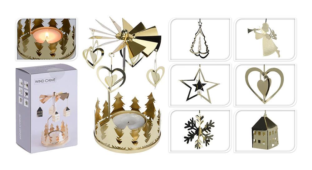 Vánoční kolotoč je příjemnou dekorací v období zimy. Vložte do něj zapálenou čajovou svíčku a ozdoby na kolotoči se roztočí.